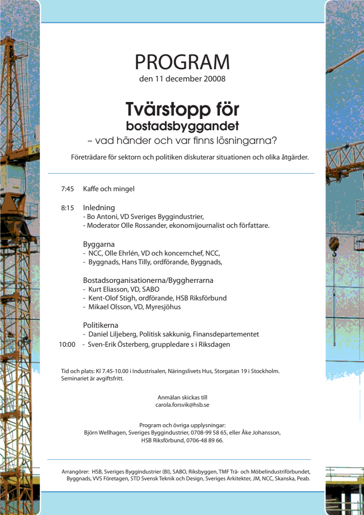 Program för seminariet "Tvärstopp i bostadsbyggandet" den 11 december 2008